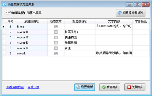 2、業(yè)務消息模板設置
