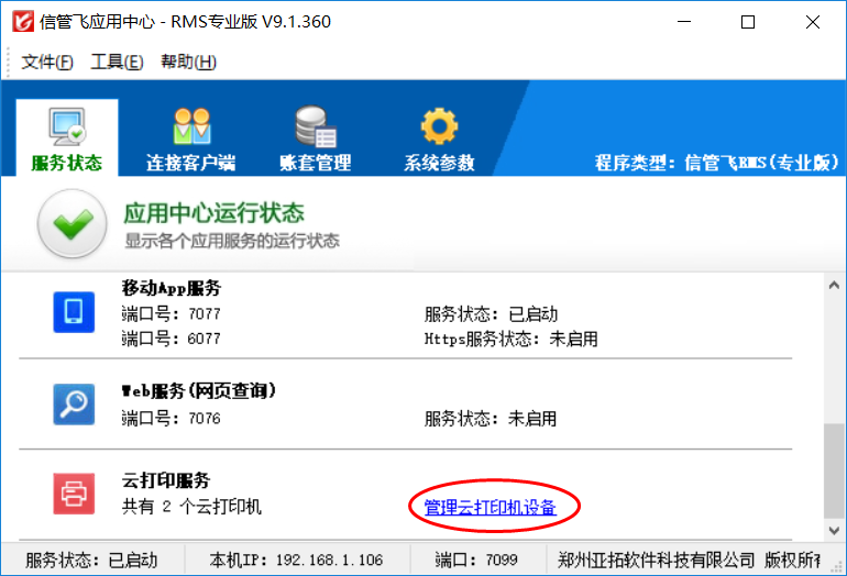 云打印服務(wù)是亞拓軟件自主研發(fā)的遠(yuǎn)程打印服務(wù),可以遠(yuǎn)程調(diào)用服務(wù)端的打印機(jī)設(shè)備進(jìn)行遠(yuǎn)程打印。在應(yīng)用中心所在的主機(jī)電腦上,可以維護(hù)云打印機(jī)設(shè)備,以供客戶端程序(含手機(jī)App)調(diào)用打印。 配合動態(tài)IP解析服務(wù),可以實(shí)現(xiàn)互聯(lián)網(wǎng)遠(yuǎn)程打印。