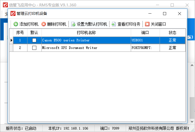 應(yīng)用中心維護(hù)云打印機(jī)設(shè)備,并可設(shè)置默認(rèn)的云打印機(jī)。