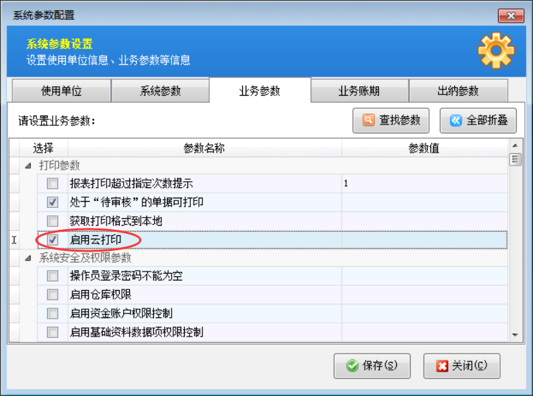 系統(tǒng)參數(shù)中配置啟用云打印。