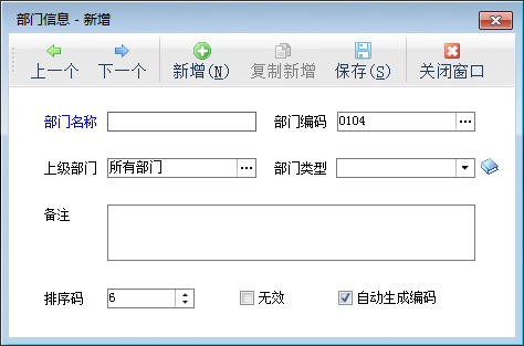 新增部門:增加部門信息,復(fù)制新增可以復(fù)制當(dāng)前的部門進行修改后保存。