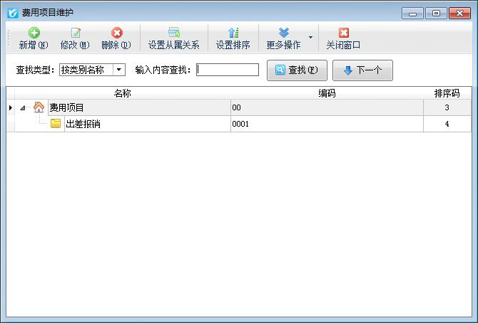 新增費用項目:點“新增”按鈕,可以在選擇的當(dāng)前費用項目下增加下級費用項目。