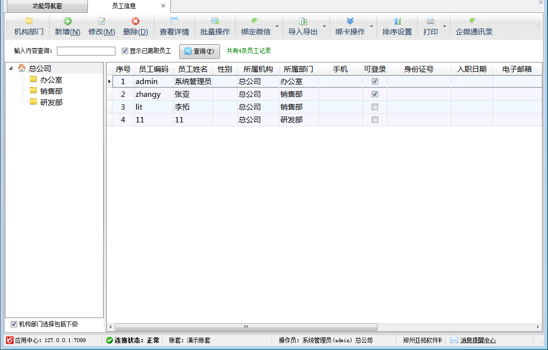 批量操作:對員工列表進行全選、反選、全不選等批量選擇的操作方式,進行批量操作。