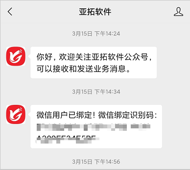 ????(1)選擇邀請綁定微信,會彈出邀請綁定微信用戶的二維碼,復(fù)制二維碼發(fā)給客戶,客戶微信掃碼即可關(guān)注并綁定公眾號,也可復(fù)制識別碼給客戶,客戶關(guān)注公眾號然后發(fā)送此識別碼給公眾號,成功綁定微信。