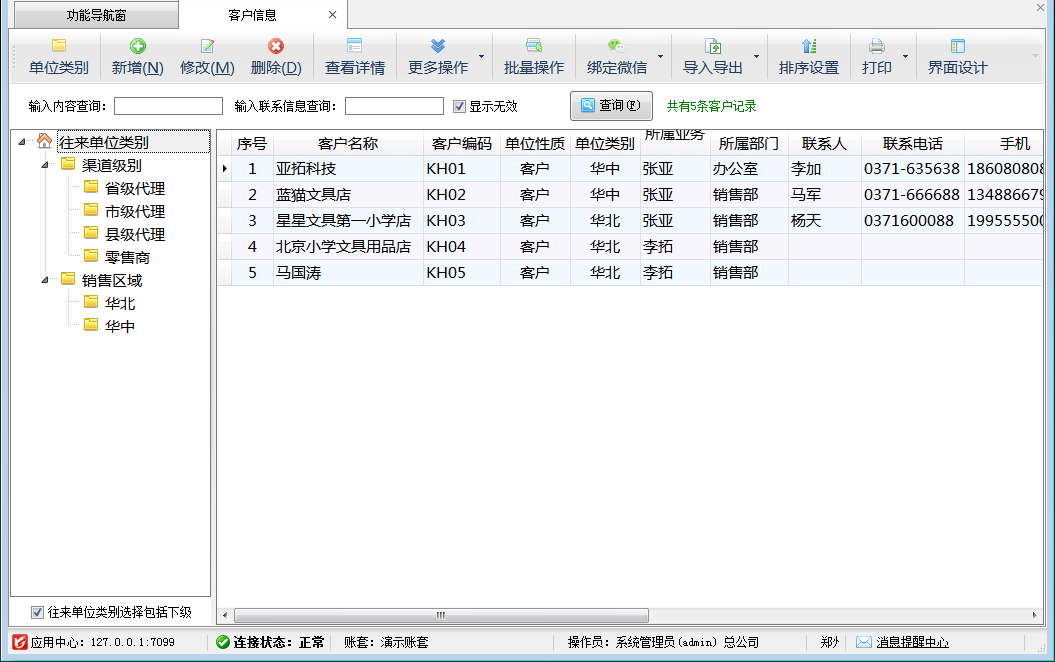 ????在客戶信息管理、供應(yīng)商信息管理、潛在客戶管理中可以設(shè)置往來單位所在的行政區(qū)域,在統(tǒng)計查詢中可以按照行政區(qū)域進行統(tǒng)計查詢。