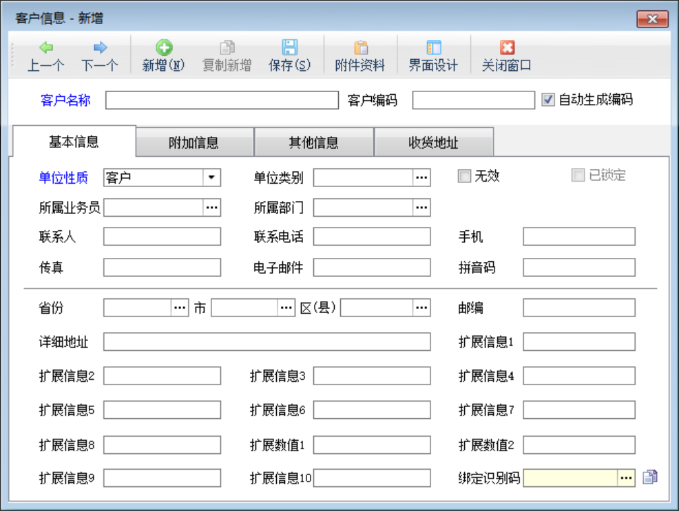單位性質(zhì):包括客戶、供應(yīng)商、客戶及供應(yīng)商3種。如果沒有“供應(yīng)商信息”權(quán)限則無法修改“單位性質(zhì)”。