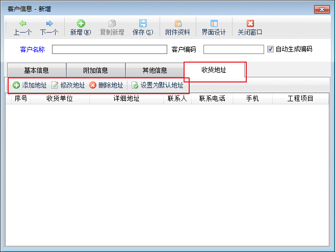 收貨地址:可添加,修改,刪除客戶的收貨地址,設(shè)置客戶地址為默認(rèn)地址。