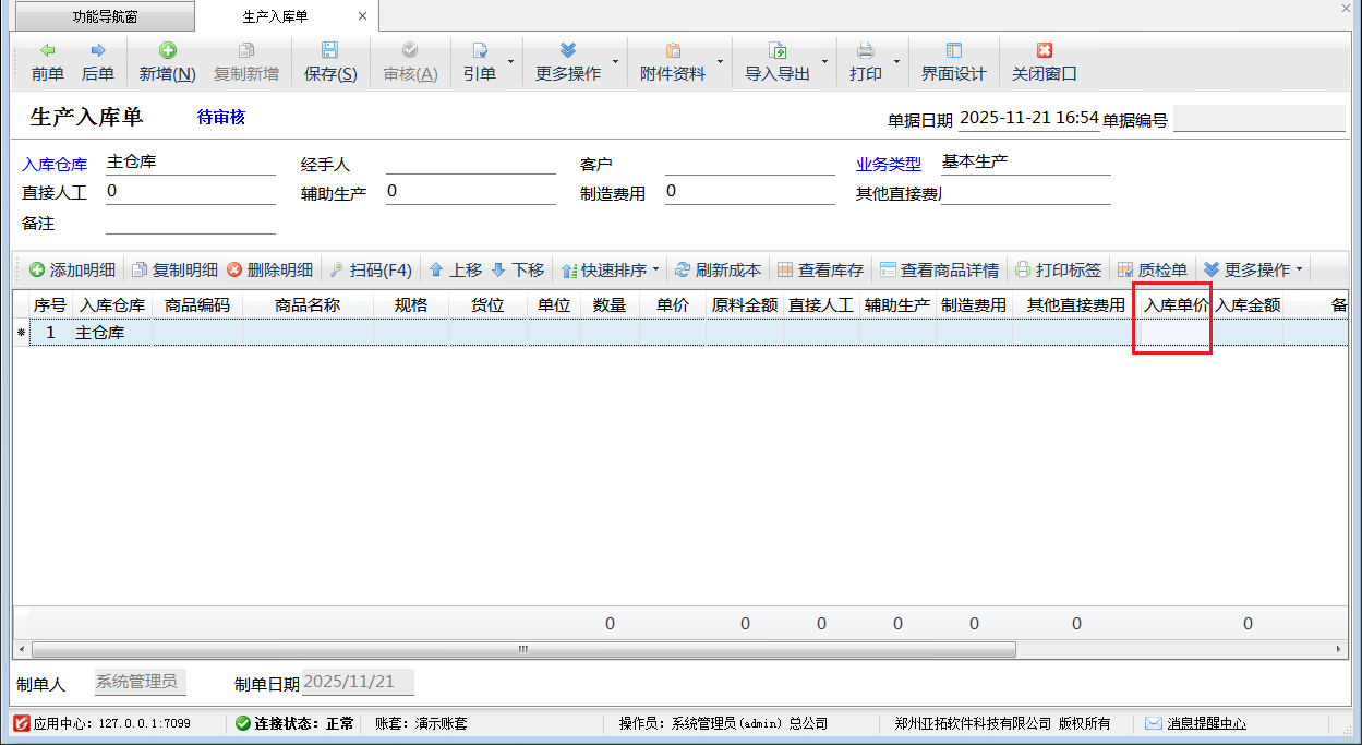 生產(chǎn)入庫價:生產(chǎn)成品入庫單默認(rèn)將調(diào)取這個價格作為成本價入庫。