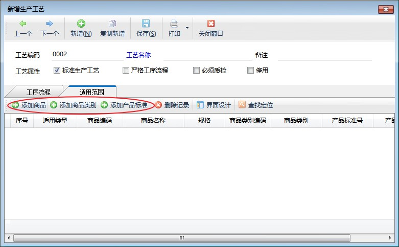 適用范圍:可添加此生產流程使用的商品和產品標準。