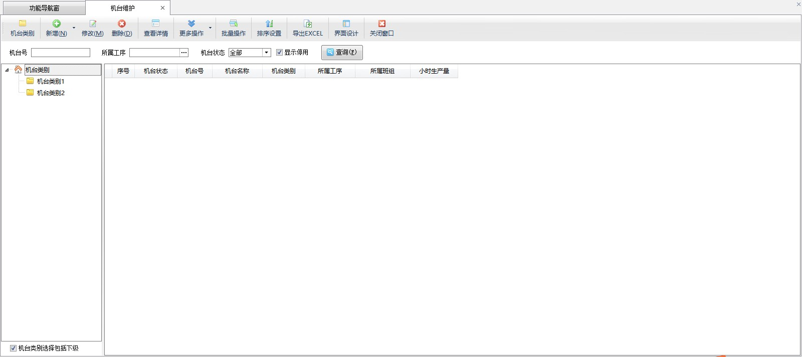 機臺類別:點工具欄中的“機臺類別”按鈕,可對機臺的分類進行維護。