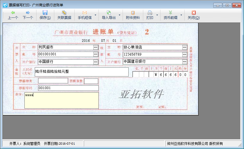 打印票據(jù):直接打印票據(jù)。