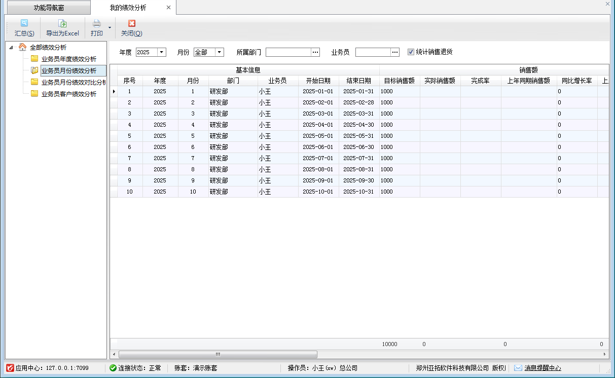 修改績效目標:在工具欄點擊“修改”按鈕即可修改績效目標,可以修改目標銷售額、目標銷量、目標回款額、目標銷售費用等目標數(shù)據(jù)。