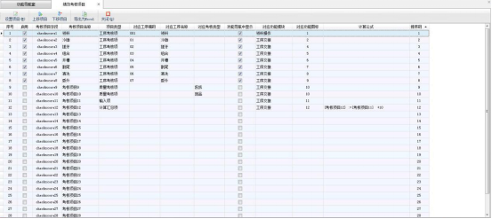 設置考核項目:在工具欄點擊“設置項目”,可以打開“考核項目設置”界面,可以設置考核項目名、項目類型(工序考核項、質(zhì)量考核項、輸入項、計算匯總項)及考核項目否需要在功能導航中顯示等。如下圖所示: