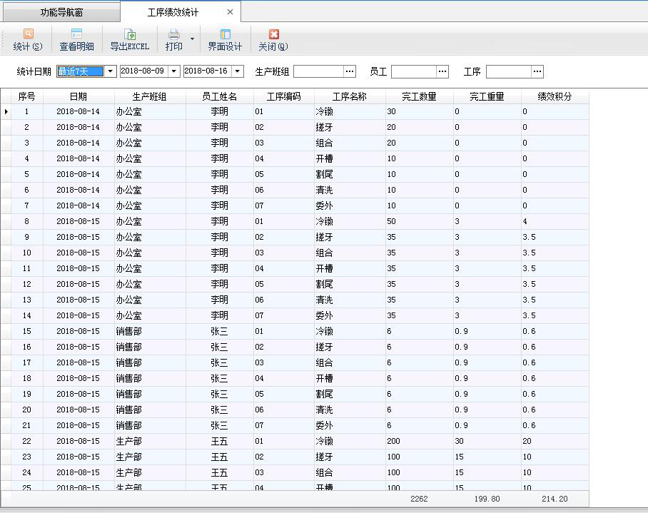查看詳情:在工具欄點擊“查看詳情”按鈕可以查詢工序績效明細信息。