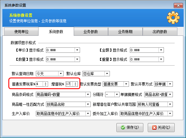 發(fā)票類型:包括填開(kāi)收據(jù)、普通發(fā)票、增值稅發(fā)票等,如果選擇普通發(fā)票,單據(jù)明細(xì)中的商品稅率默認(rèn)取“系統(tǒng)管理”—》“系統(tǒng)參數(shù)設(shè)置”中配置的普通發(fā)票稅率。如果選擇“增值稅發(fā)票”,則單據(jù)明細(xì)中的商品稅率默認(rèn)取“系統(tǒng)參數(shù)設(shè)置”中配置的增值稅發(fā)票稅率。