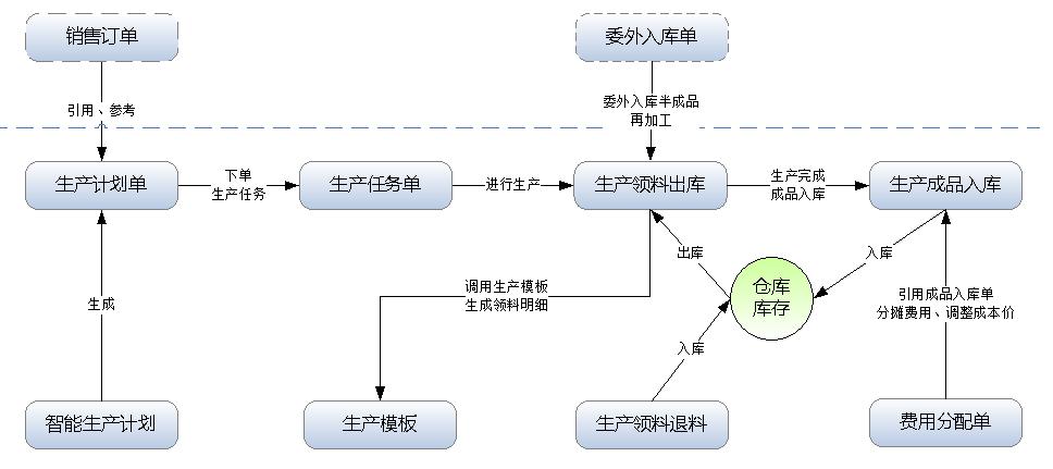 ????生產(chǎn)任務單即實際加工生產(chǎn)單,用于執(zhí)行生產(chǎn)計劃,進入實際生產(chǎn)階段。本軟件中生產(chǎn)任務單不是必須使用的,可以不錄入生產(chǎn)任務單,直接開“生產(chǎn)領料出庫單”和“生產(chǎn)成品入庫單”也是可以的。正常情況下,我們建議錄入此單據(jù),并引用生產(chǎn)計劃單,以便完成對生產(chǎn)計劃單執(zhí)行狀態(tài)的跟蹤監(jiān)控。