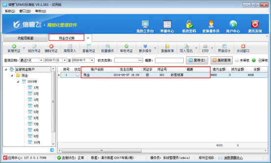 信管飛RMS標(biāo)準(zhǔn)版和專業(yè)版中增加了出納模塊,可以登記現(xiàn)金銀行日記賬。信管飛RMS 軟件中用戶在做收款結(jié)算后如需要把這筆賬管理到日記賬中,可以在收款時轉(zhuǎn)記到出納日記賬中。在軟件中如何操作呢? 本文以“信管飛RMS標(biāo)準(zhǔn)版的收款結(jié)算單”為例,示范下如何把收款的金額轉(zhuǎn)記到日記賬中。 首先在功能導(dǎo)航窗打開“往來管理”—》“應(yīng)收款管理”,選擇一個未結(jié)銷的應(yīng)收款,點(diǎn)擊工具欄的“收款結(jié)算”按鈕,進(jìn)入收款結(jié)算單界面。在收款結(jié)算單界面正常進(jìn)行收款操作,保存或者審核收款結(jié)