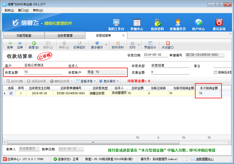 信管飛RMS為進銷存一體化管理軟件,主要包括采購管理、銷售管理、倉庫管理、往來管理等業務管理功能,此軟件內采購入庫、銷售出庫單據審核后會自動生成應收應付款信息,在往來管理模塊統一管理應收應付款,并可以對往來應收應付款進行收付款結算。 一般在剛開始使用軟件時對軟件功能不熟悉,首次對應收應付款進行收付款結算,錄入收付款金額時,會提示“收付款資金賬戶不存在,請先維護收付款賬戶信息”,收/付款結算單無法保存,如下圖所示。 這種情況是因為在系統內沒有維護資金賬戶導致的,請在功能導航窗點擊“基礎資
