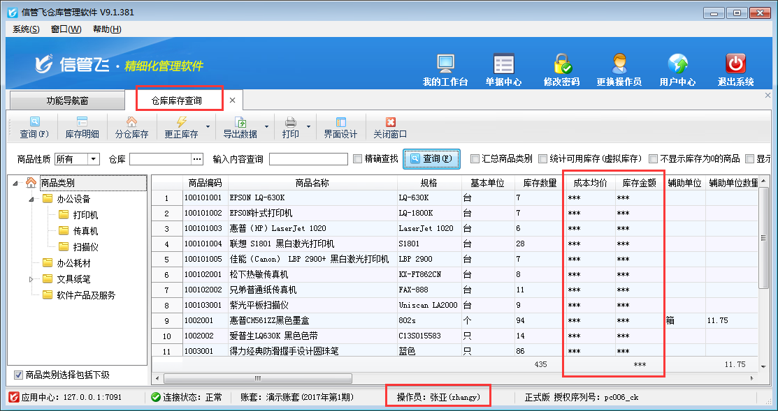 信管飛RMS、信管飛倉庫管理軟件及信管飛送貨單軟件內都可以設置多個操作員并對操作員賬號設置權限,部分用戶不希望員工賬號可以查看到商品成本價格,如何設置呢?本篇文章以信管飛倉庫管理軟件為例詳細介紹一下倉庫管理軟件內如何設置操作員不可查看商品成本價? 在功能導航窗點“系統管理”→“操作員及授權”即可進入“操作員管理及授權”界面,選中操作員賬號,在“其他操作權限”界面將“查看商品成本價”權限打鉤取消,如下圖一所示,設置操作員賬號“張亞”不可查看商品成本價格。圖一 操作員管理及授權界面 設置完