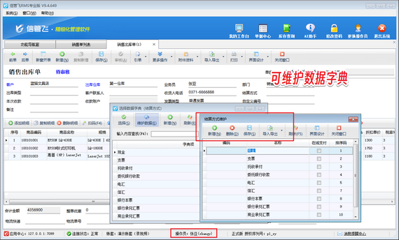信管飛RMS支持數據字典功能,可以將常用內容維護到數據字典內,方便開單時候直接選擇錄入,例如“結算方式”。有用戶操作員賬號登錄無法維護數據字典,如下圖所示。 演示視頻觀看鏈接:操作員賬號無法維護數據字典,如何解決演示視頻 出現以上問題的原因是:當前登錄的操作員賬號沒有數據字典維護的權限。 解決方法如下:使用系統管理員賬號登錄軟件,在功能導航窗點擊“系統管理”—》“操作員及授權”打開操作員管理及授權界面,選擇操作員賬號,在其他操作權限界面將