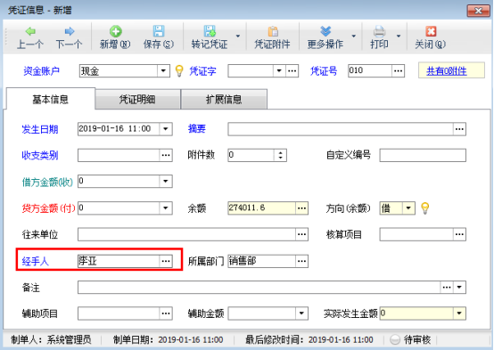 信管飛出納記賬軟件專業版包括員工借款管理功能,在員工借款管理中可以查看員工欠款信息,如下圖所示,以員工“李亞”為例,員工欠款是2000元。圖1 另外,在錄入憑證選擇經手人(員工)時,也可以直接看到此經手人(員工)的欠款信息,本篇文章我們以信管飛出納記賬軟件專業版為例來介紹一下如何在錄入憑證時顯示經手人欠款信息。 在功能導航窗點擊“系統管理”—》“系統參數配置”—》“出納參數”,即可進入到“出納參數”配置界面,打鉤啟用“錄入憑證時顯示經手人欠款信息”參數,然后保存,如下圖所示:圖2&nb