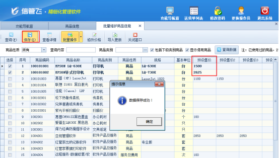 信管飛送貨單、信管飛rms等軟件支持在開單前設置商品的預設價格,如預設售價等,方便開單選擇商品的自動調用價格信息。部分客戶商品價格可能存在后期上升或者下降的調整,本篇以信管飛送貨單軟件為例,介紹下如何批量修改商品的預設售價信息。 首先需要進入商品信息的批量維護界面,在功能導航窗選擇“基礎資料”—》“商品信息”,在商品信息界面,點擊工具欄中的更多操作,選擇更多操作下的“批量維護商品信息”,進入批量維護商品信息界面,如下圖1所示: 圖1 在批量