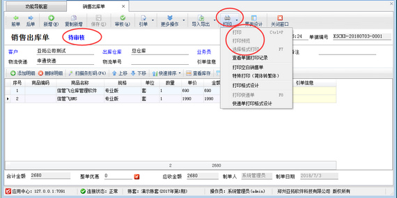 信管飛RMS、信管飛倉庫管理軟件等默認開單保存后即可打印,部分用戶想設置在單據未審核之前不允許打印,如何設置呢?本篇文章我們以信管飛倉庫管理軟件為例來介紹一下如何設置處于“待審核”的單據不可打。 在功能導航窗點擊“系統管理”—》“系統參數配置”—》“業務參數”,即可進入到“業務參數”配置界面,在打印參數內找到“處于‘待審核’的單據可打印”參數,把這個參數的勾選去掉,然后保存,如下圖一所示。圖一 系統參數設置界面 配置保存后,在功能導航窗點擊“銷售管理”—》“銷售出庫單”,