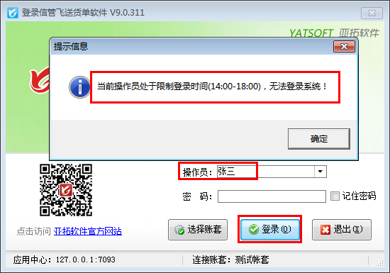 為了使用戶可以更好的管理公司賬套數據,信管飛送貨單軟件、信管飛RMS、信管飛出納記賬軟件、信管飛倉庫管理軟件都支持設置操作員的登錄限制,用戶可以自定義設置操作員登錄軟件的時間,設置后,操作員在受限制時間內則無法登錄軟件。 本文以送貨單軟件為例,介紹一下如何設置操作員登錄限制。 登錄軟件,在功能導航窗選擇“系統管理”—》“操作員及授權”,進入“操作員管理及授權”界面,如圖1、圖2所示。圖1圖2 如圖2所示,在“操作員管理及授權”界面,點擊“U盾及登錄限