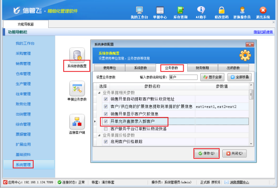 此文章相關(guān)演示視頻:開單界面無法直接錄入新客戶,如何解決? 在如今快節(jié)奏的商業(yè)世界里,高效便捷的業(yè)務(wù)管理軟件是企業(yè)運(yùn)營的得力助手。信管飛系列軟件憑借其強(qiáng)大的功能,在采購及銷售開單時(shí)支持直接錄入新客戶,大大節(jié)省了業(yè)務(wù)處理時(shí)間,提升了工作效率,深受眾多企業(yè)用戶的青睞。然而部分用戶在使用信管飛軟件時(shí),碰到了無法新增客戶的棘手情況,這無疑給業(yè)務(wù)推進(jìn)帶來了阻礙。本篇文章以“信管飛RMS軟件”為例介紹下何輕松解決這一問題,讓你快速恢復(fù)順暢的業(yè)務(wù)開單流程。&nb