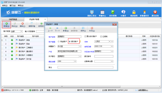 許多用戶在使用軟件記賬時(shí)都會(huì)問到一個(gè)問題:如何新增現(xiàn)金賬戶和銀行賬戶?本節(jié)我們以信管飛RMS專業(yè)版來介紹一下進(jìn)銷存軟件內(nèi)如何新增資金賬戶? 在功能導(dǎo)航窗點(diǎn)擊“基礎(chǔ)資料”—“資金賬戶”打開資金賬戶信息界面,點(diǎn)擊工具欄中的“新增”按鈕,在彈出的“資金賬戶—新增”窗口錄入賬戶名稱、勾選賬戶類型“現(xiàn)金賬戶”、期初余額及其他相關(guān)信息后點(diǎn)擊“保存”按鈕即可保存到系統(tǒng)內(nèi),如下圖 點(diǎn)擊工具欄中的“新增”按鈕,在彈出的“資金賬戶—新增”窗口錄入賬戶名稱、勾選賬戶類型“