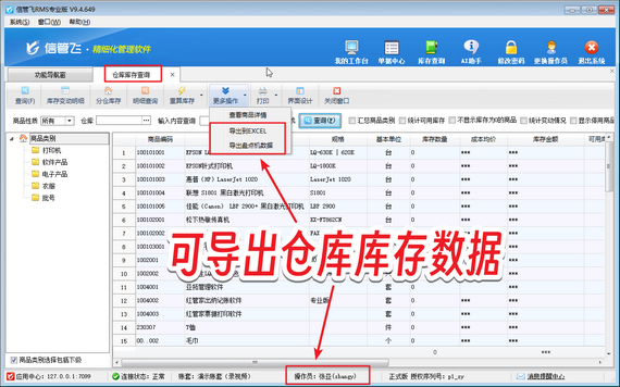 信管飛RMS支持倉庫庫存查詢功能,倉庫庫存查詢可以查看存貨的實(shí)時(shí)庫存情況,包括庫存數(shù)量、庫存成本情況等,同時(shí)支持導(dǎo)出倉庫庫存數(shù)據(jù)。若操作員賬號(hào)登錄軟件無法導(dǎo)出倉庫庫存數(shù)據(jù),通常源于操作員權(quán)限未啟用,本篇文章為您呈現(xiàn)高效解決方案。 演示視頻觀看鏈接:操作員無法導(dǎo)出倉庫庫存數(shù)據(jù),如何解決演示視頻 在功能導(dǎo)航窗點(diǎn)擊“系統(tǒng)管理”—》“操作員及授權(quán)”打開操作員管理及授權(quán)界面,選擇操作員賬號(hào)“張亞”,然后在其右側(cè)的功能模塊權(quán)限內(nèi)選擇“庫存查詢”,將倉庫庫存查詢的“導(dǎo)出”權(quán)限勾選上,然后保存權(quán)限設(shè)置