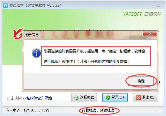 亞拓軟件旗下的信管飛送貨單軟件(原紅管家送貨單軟件)、出納記賬軟件、倉庫管理軟件、亞拓管理軟件等都是公司自主研發的產品,軟件版本在不斷的升級中。用戶升級版本是永久免費的。 本文章以信管飛送貨單軟件為例,示范升級版本后賬套如何升級操作。軟件升級的版本可以直接在官網上下載最新版本,然后覆蓋安裝在原路徑中。安裝完成后,打開應用中心程序,可以在賬套管理中看到賬套狀態為“需升級”狀態。升級賬套有以下兩種方法。 一、直接在應用中心賬套管理中進行升級;在應用中心賬