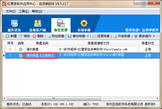 紅管家送貨單軟件、亞拓管理軟件等支持對(duì)賬套進(jìn)行結(jié)轉(zhuǎn)新開賬操作。結(jié)轉(zhuǎn)新開賬一般用于年底結(jié)存新開賬,該結(jié)存操作不是必需的,如需要跨年查詢,可以不進(jìn)行年結(jié)轉(zhuǎn),軟件支持多年賬處理。 本篇文章以送貨單軟件為例,示范下如何對(duì)賬套進(jìn)行結(jié)轉(zhuǎn)新開賬,新架構(gòu)版本送貨單結(jié)轉(zhuǎn)新開賬功能在應(yīng)用中心程序—》賬套管理—》更多操作中進(jìn)行結(jié)轉(zhuǎn),如下圖1所示:圖1 點(diǎn)擊“結(jié)轉(zhuǎn)新開賬”會(huì)彈出結(jié)轉(zhuǎn)新開賬界面,分成兩步操作,第一步:結(jié)轉(zhuǎn)操作提示;第二步:設(shè)置結(jié)轉(zhuǎn)截止日期。如下圖2所