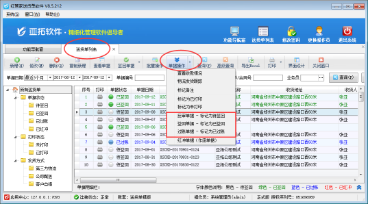 紅管家送貨單打印軟件是一款針對中小型企業開發的集送貨管理(發貨管理)、退貨管理(銷售退貨)、銷售收款(應收款管理)等功能為一體的送貨管理及打印軟件(送貨單打印軟件、發貨單打印軟件、出貨單打印軟件、收據打印軟件、貨單票據打印軟件)。 送貨單一般情況下是一式三聯(存根聯、客戶聯、回單聯),其中回單聯的作用是:在購買方收到商品核對完畢,與送貨單上的商品明細相符后,在回單聯上簽完名,由銷售方拿回,證明貨物已送達,買方確認已簽收。 軟件通過狀態控制實現簡單的流程管理(待簽回-》已簽回-》已結賬)