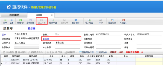 紅管家送貨單軟件、亞拓管理軟件、紅管家倉庫管理軟件等支持開銷售單輸入業余員,以區分單據是誰所開的。也有客戶不需要開單時候輸入業務員,對于不需要輸入業務員的需求,軟件設置系統參數來進行控制業務員是否為空顯示。 以送貨單軟件為例,示范下如果設置開單業務員允許為空。軟件安裝完成,系統參數設置默認業務員不允許為空,正常開送貨單,未在單據主體中輸入“業務員”,商品輸入完成后點擊確認開單按鈕,會提示“業務員不能為空”,如下圖1所示:圖1 在功能導航窗選擇系統管理