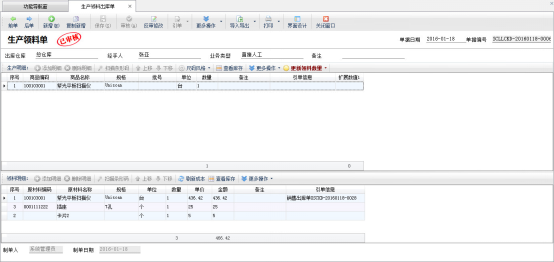 生產過程中可通過開“生產領料出庫單”領取原材料出庫。生產領料單包括生產產品明細和領料明細兩部分,支持根據“生產模板”自動生成需要的原材料明細。生產明細中的商品并不影響倉庫庫存,領料明細中的原材料將會出庫。 生產領料單是屬于生產管理模塊,生產管理模塊是屬于擴展模塊,只有在亞拓管理軟件專業版、紅管家倉庫管理軟件專業版中才能使用,下面我們來演示一下具體的操作步驟。 在功能導航窗,點“生產管理”—》“生產領料出庫”,即可進入生產領料出庫界面,如下圖1所示:圖1引單:生產領料出庫單可以引用“生產