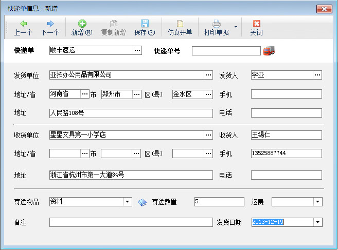 紅管家快遞單打印軟件是亞拓軟件針對企事業(yè)單位票據(jù)管理及打印需求而開發(fā)的一款快遞單套打軟件,主要包括快遞單管理、快遞單打印模板、快遞單打印、快遞單查詢等功能。 紅管家快遞單打印軟件目前支持郵政EMS特快專遞單打印、順豐速運快遞單打印、申通快遞單打印、圓通快遞單打印以及其他物流運單打印。打開要打印的快遞單模板,輸入相關快遞單詳情,保存后,先預覽快遞單打印效果圖,確認無誤后,可以點擊打印,打印該新增的快遞單
