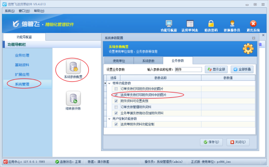 一、啟用單據附件管理功能在功能導航窗點擊“系統管理”----“系統參數配置”----“業務參數”勾選送貨單附件資料功能定制,保存設置。如下圖所示:二、附件資料設置類別進行管理支持在保存單據后把單據對應的附件資料進行導入,支持圖片、Excel等格式,部分用戶在導入多個附件后,需要對附件進行分類管理三、打印附件資料中的圖片業務單據保存后支持上傳附件資料,打印送貨單的時候如果需要打印送貨單附件資料中的圖片,可以啟用參數“送貨單支持打印附件資料中的圖片”。在功能導航窗點擊“系統管理”—》“系統參數配置”—》“業務參數”,打勾“送貨單支持打印附件資料中的圖片”,保存設置,如下圖所示:【提示】非圖片文件系