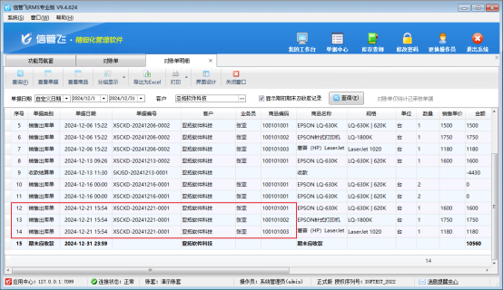 進銷存軟件集成了采購管理、銷售管理、庫存管理以及財務管理等多個模塊,實現了企業業務流程的數字化管理。通過實時跟蹤商品的入庫、出庫、庫存變動以及銷售情況,進銷存軟件能夠生成詳細的交易記錄、庫存報告和財務報表,為企業的決策提供數據支持。本篇文章介紹一下進銷存軟件如何生成客戶對賬單? 在功能導航窗點擊“銷售管理”—》“對賬單”,進入“對賬單”界面,點擊“生成對賬單”,在生成對賬單界面請輸入賬期、起止日期、所有客戶或某個客戶(圖中實例生成對賬單客戶:亞拓軟件科技),點擊確定對賬單界面會生成亞拓軟件科技客戶