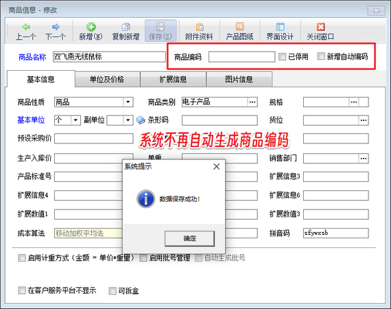 在實際使用信管飛RMS進行商品管理的過程中,有些用戶更新到新版本后發現新增商品時系統會自動生成商品編碼,如下圖所示。而這一功能對于某些用戶來說并不必要,甚至可能會導致商品編碼混亂。 針對這一問題,本文介紹一下如何在信管飛RMS中取消新增商品時的自動生成商品編碼功能,通過調整系統編碼規則設置來優化商品管理流程,使其更加符合用戶的實際需求。接下來,我們將詳細闡述具體的操作步驟。 演示視頻觀看鏈接:信管飛RMS新增商品如何取消自動生成商品編碼演示視頻 在功