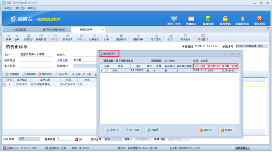 銷售時選擇批號可查看到相應的有效期信息 在當今快速變化的商業環境中,庫存管理的精準性與效率直接關系到企業的運營成本、產品質量控制及客戶滿意度。特別是對于涉及食品、藥品、化妝品等需要嚴格追蹤產品生命周期的行業而言,批號管理更是不可或缺的一環。信管飛RMS軟件,作為一款集先進管理理念與技術創新于一體的企業管理軟件,憑借其強大的批號管理功能,特別是支持輸入生產日期、有效期,并在倉庫分批號明細查詢中直觀展示這些信息,為企業帶來了前所未有的庫存精細化管理體驗。 批號,作為產品身份的唯一標識,不僅記錄了產品的生