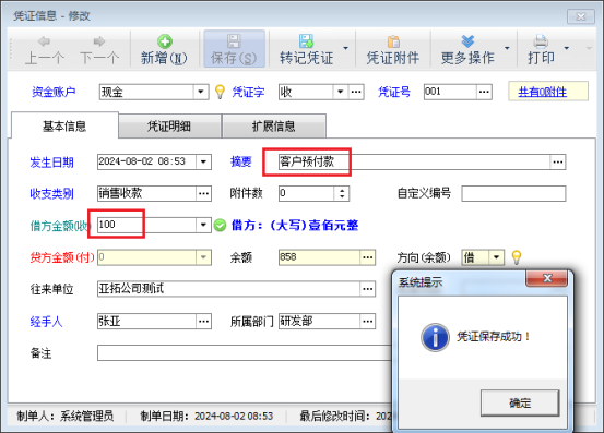 此文章相關演示視頻:新增客戶預付款界面如何直接轉記出納憑證演示視頻 信管飛軟件支持錄入客戶預付款,客戶預付款是客戶預付訂金給我們,這種情況下貨物還沒有發出。如果還沒有形成相應的銷售訂單,這時我們可以直接在應收款管理界面錄入客戶預付款。另外標準版和專業版中增加了出納管理模塊,可以登記現金銀行日記賬。如果在錄入客戶預付款的同時需要把這筆賬管理到日記賬中,可以在應收款信息界面直接把預付款轉記到出納賬中。本篇文章介紹下如何操作? 在功能導航窗點擊“往來管理”
