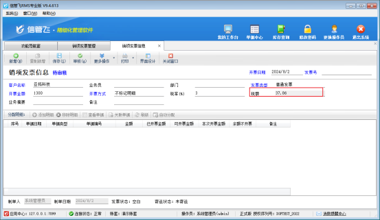 信管飛軟件支持用戶自己設置數據項顯示格式,比如:單價、金額、數量等單據界面顯示小數位格式,都可進行調整。本文介紹一下進銷項發票單據中稅額的小數位如何設置? 在功能導航窗點擊“系統管理”—》“系統參數配置”—》“系統參數”,在“系統參數”界面可以設置數據項顯示格式,調整金額顯示格式稅額的也會改變,設置完之后點擊“保存”按鈕保存配置,如下圖所示: 金額顯示格式設置為“0.##”,在登記銷項發票界面,稅額的顯示位數也就是兩位,可以設置三位或者四位小數位,如