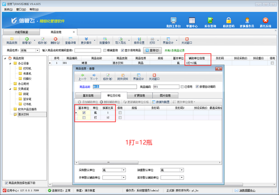 在進銷存軟件中,輔助單位是與基本單位相對應的另一種計量單位。例如,一個商品的基本單位可能是“個”,而輔助單位可能是“箱”或“包”。通過設置輔助單位,我們可以更靈活地處理商品的計量問題。 那么,商品輔助單位功能在進銷存軟件中究竟有哪些作用呢? 提高操作效率:在采購進貨、銷售出庫以及庫存管理等環節,我們經常需要用到不同的計量單位。有了輔助單位功能,我們無需手動進行單位換算,軟件會自動完成,大大提高了我們的操作效率。如下圖所示,啤酒采購入庫240瓶(輔助單位數量:20打)。 &nb
