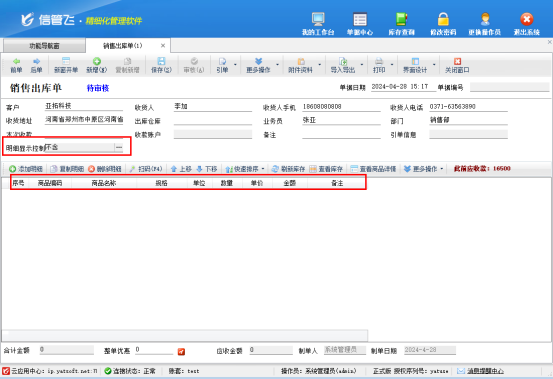 信管飛RMS軟件和信管飛倉庫管理軟件均支持界面設計,可以設置界面顯示數據項。新版本界面設計支持設置單據明細顯示配置,可選擇后控制界面顯示數據項,本文以“信管飛軟件”為例,示范如何配置? 演示視頻觀看鏈接:信管飛RMS軟件中單據明細控制功能如何使用? 以“銷售出庫單”為例,在銷售出庫單界面,點擊工具欄“界面設計”,在單據主體中,勾選顯示“擴展信息1”,向上移動位置,修改自定義列名,取值方式選擇“單據明細控制”,如下圖所示: &nb