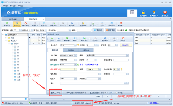 演示視頻觀看鏈接:操作員不可修改其他人員錄入的出納憑證,如何解決演示視頻 有用戶在修改出納日記賬憑證時(shí),會(huì)遇到無法修改的情況,系統(tǒng)彈出提示信息“當(dāng)前憑證為其他操作員錄入的,您沒有權(quán)限修改!”,如下圖所示。 出現(xiàn)此問題的原因是:當(dāng)前登錄的操作員賬號(hào)沒有修改其他人員錄入的出納憑證權(quán)限,解決方法如下:使用系統(tǒng)管理員賬號(hào)登錄軟件,在功能導(dǎo)航窗點(diǎn)擊“系統(tǒng)管理”—》“操作員及授權(quán)”打開操作員管理及授權(quán)界面,選擇操作員賬號(hào),在“其他操作權(quán)限”界面將“可修改其他人員錄入的出納憑證”權(quán)限勾選上,然后保存權(quán)