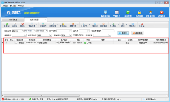 演示視頻觀看鏈接:刪除收款結銷余額轉存生成的客戶預付款記錄演示視頻 應收、應付賬款管理是現代企業資金管理的重要組成部分,其管理效果的好壞直接影響到企業經營的成敗,信管飛RMS含有應收應付往來賬款管理功能,支持對應收款、應付款、預收款、預付款、退貨款等進行管理。 系統支持收款結銷余額轉存生成客戶預付款,結銷余額轉存生成的客戶預付款記錄無法直接刪除,如下圖所示,本篇文章介紹一下收款結銷余額轉存生成的客戶預付款記錄,如何刪除? 在應收款管理界面,選擇需要刪