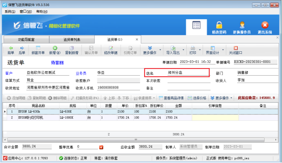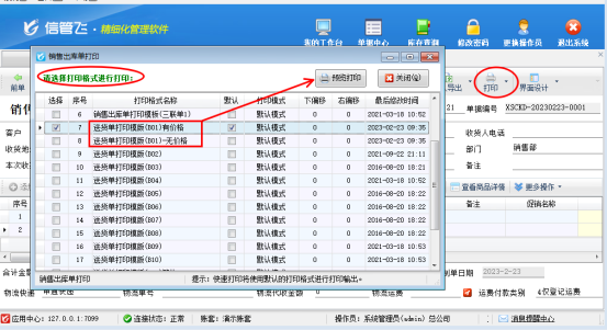信管飛系列軟件都支持自定義設計打印模板,軟件單據中默認有設計好的打印樣式,有用戶存在打印有價格和無價格兩種送貨單的打印需求,這種在軟件中該如何設置?本文以“信管飛RMS軟件”為例示范下。 演示視頻觀看鏈接:http://m.jiushiaichi.cn/news/video/202302/1917.html 新開一個銷售出庫單,打印下點擊打印預覽,默認模板“送貨單打印模版(B01)”預覽界面如下所示,含單價和金額。