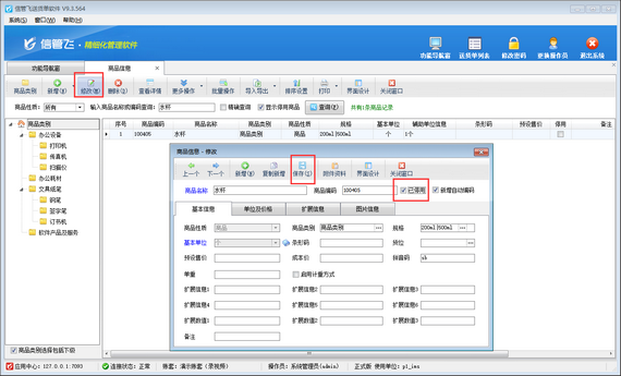 演示視頻觀看鏈接:商品信息刪除不成功解決方法 信管飛軟件支持維護商品信息,如商品信息不再使用時,執行刪除商品信息后發現此商品信息未刪除成功,在商品信息界面還可以查詢到,如何解決? 出現此問題的原因是:此商品在單據內使用過,可在商品信息界面工具欄點擊“更多操作”下拉列表點擊“查看已使用此商品的單據”按鈕查看已使用此商品的單據詳情,如下圖所示。 解決方法:如商品在單據內已使用過,系統不支持刪除。如不再使用此商品,可停用商品,已停用的商品無法再被用于開單。