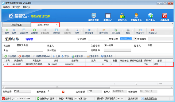 信管飛RMS軟件、信管飛倉庫管理軟件支持開采購入庫單來管理采購進貨,也支持先開采購訂單然后根據采購訂單進行采購商品入庫。有時需要根據單據中商品的實際銷售情況進行采購商品,那么該如何操作呢?軟件可通過引單銷售出庫單開采購訂單 ,下面以信管飛RMS專業版為例,演示下如何根據商品銷售情況開采購單? 在功能導航窗點擊“采購管理”—》“采購訂單”—》“新增”即可新增采購訂單,如下圖所示: 在采購訂單界面中點擊“引單”,選擇“銷售出庫單”即可進入選擇單據界面,如下圖所示: &